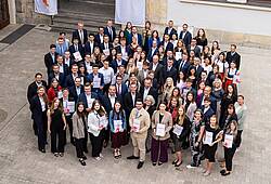 Vorbilder: Die besten Azubis des Ausbildungsjahrgangs 2022 der bayerischen Genossenschaften haben im Münchner Künstlerhaus ihren Lehrabschluss gefeiert.