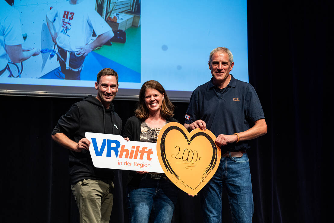 Am Stand des VR Gewinnsparvereins Bayern konnten die Auszubildenden Spendengelder generieren, indem sie sich an einer Laufaktion beteiligen. Rund 200 Euro kamen so zusammen, der Gewinnsparverein erhöhte diese Summe auf 1.000 Euro. Die ABG steuerte weitere 1.000 Euro bei. Die Spende in Höhe von insgesamt 2.000 Euro geht in diesem Jahr an den Deutschen Alpenverein, Sektion Miesbach, Klettergruppe H3 – ein Projekt für Menschen mit Handicap.