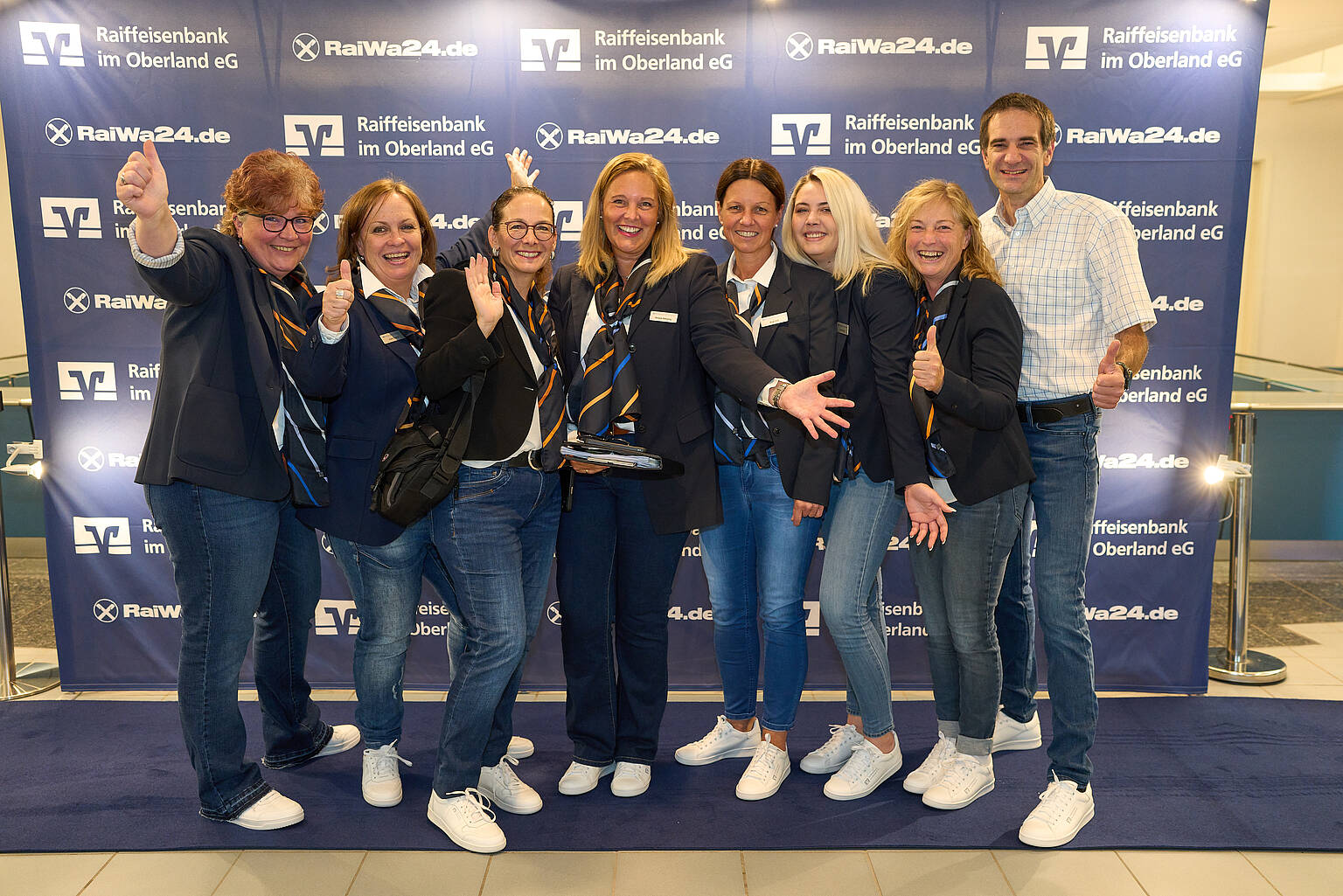 Ohne sie würde es die „Sterne des Sports“ im Oberland nicht geben: Das Veranstaltungsteam der Raiffeisenbank im Oberland mit Leiterin Simone Kleinjung (4. v. li.).