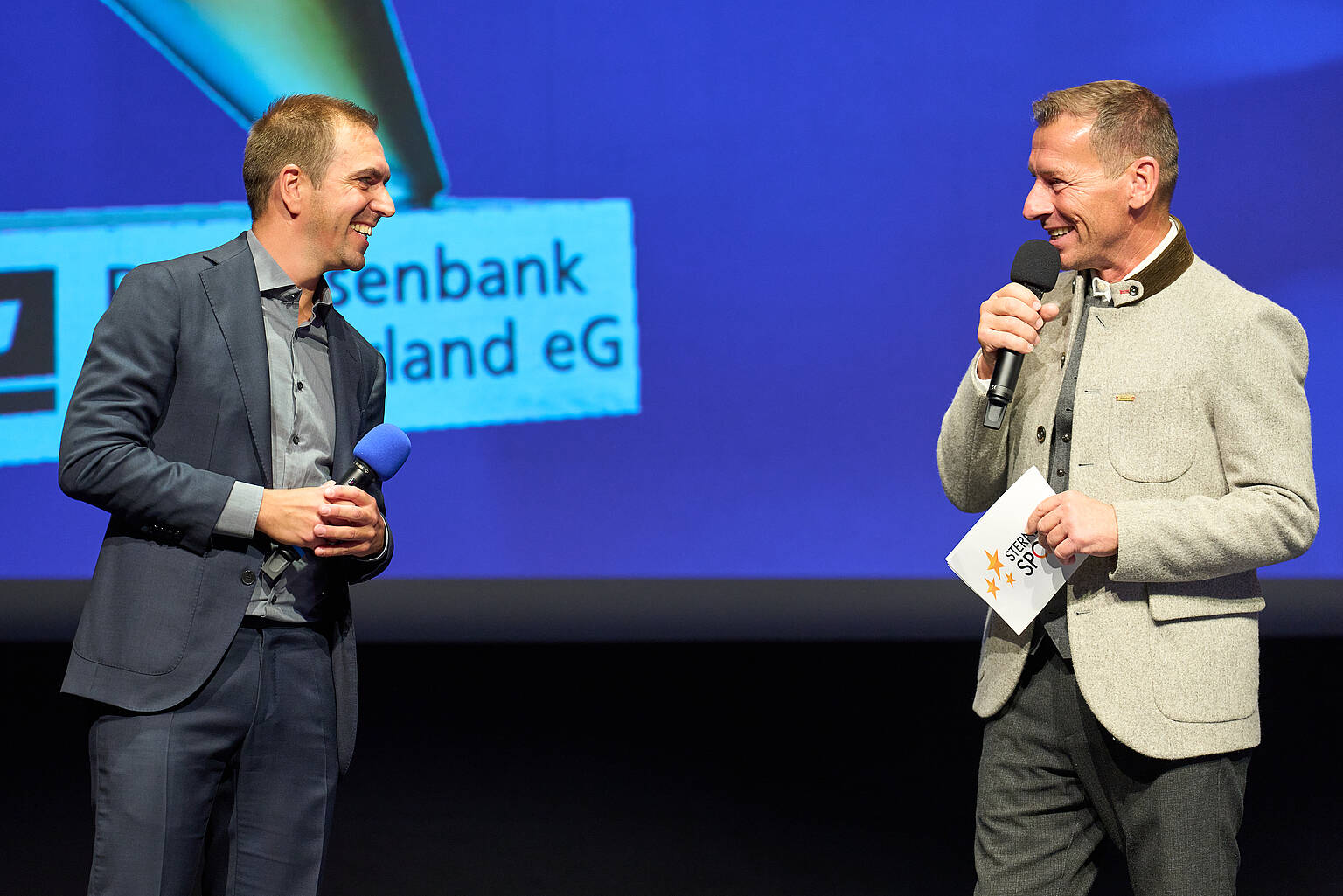 Ein Fußball-Weltmeister bei den „Sternen des Sports“ in Miesbach: Philipp Lahm (li.) im Gespräch mit Markus Othmer.