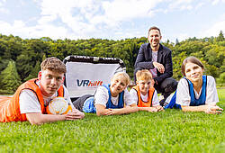 Sportlich: Die VR-Banken in Bayern können 2026 Funino-Sets an Fußballvereine spenden. Markus Eichenseer und Christian Homeier vom VR Gewinnsparverein Bayern erklären die Aktion.