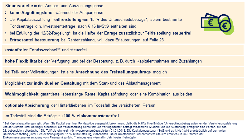 Bei einer fondsgebundenen Rentenversicherung profitieren die Anleger auch von Steuervorteilen. Quelle: R+V
