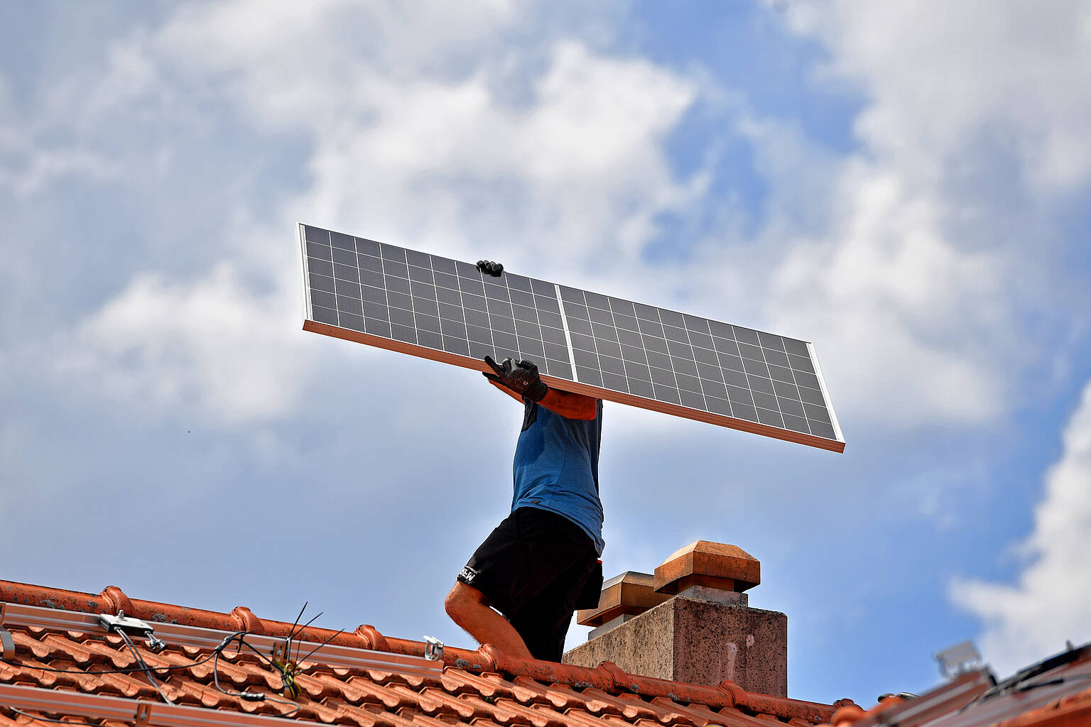 Eine neue Photovoltaik-Anlage entsteht: Künftig sollen alle geeigneten Dächer für die Solarenergie genutzt werden. Für gewerbliche Neubauten soll dies verpflichtend und für private Neubauten die Regel sein. Foto: picture alliance/SVEN SIMON/Frank Hoermann