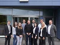 Die Teilnehmerinnen und Teilnehmer des sechsten Lehrgangs der Weiterbildung zu Fachleuten für Versicherungsvermittlung feiern ihren Erfolg gemeinsam mit den Ausbildern. Die Privatkundenbetreuerinnen und -betreuer der VR-Bank Rottal-Inn dürfen nun auch zu Versicherungen beraten. Auch Vorstandssprecher Albert Griebl (re.) gratuliert.