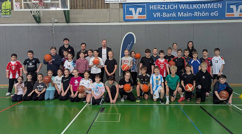 Der jährliche Basketballaktionstag fand in der Shakehands-Arena in Bad Königshofen statt. Organisiert wurde dieses Event von der VR-Bank Main-Rhön in Zusammenarbeit mit dem Verein Freak City Bamberg. Mehr als 110 Schülerinnen und Schüler der fünften Jahrgangsstufe der Dr.-Karl-Grünewald-Realschule und des Gymnasiums aus Bad Königshofen erlebten einen Vormittag voller Bewegung, Spaß und Basketballflair. „Es ist uns eine Herzensangelegenheit, uns für solche Projekte in der Region zu engagieren, um junge Menschen für Sport zu begeistern und ihnen dabei Teamgeist und Freude an der Bewegung zu vermitteln. Ein großes Dankeschön an das Jugendtrainerteam aus Bamberg, das erneut zu uns nach Bad Königshofen gekommen ist, um diesen Sporttag mit uns an den Schulen durchzuführen“, betonte Florian Abschütz, Vertreter der VR-Bank Main-Rhön, der vor Ort war und die Begeisterung der Kinder und Lehrkräfte miterlebte. Der Verein Freak City Bamberg, der Nachwuchsverein des Basketball-Bundesligisten Bamberg Baskets, erreicht durch seine Aktionen rund 10.000 Kinder.