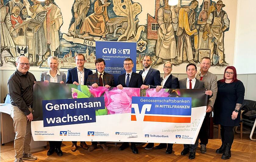 Mit einer gemeinsamen Spendenübergabe im Rathaus Bad Windsheim haben regionale Genossenschaftsbanken und der Bezirksverband Mittelfranken ihre Unterstützung für die Bayerische Landesgartenschau Bad Windsheim 2027 bekräftigt. Insgesamt kamen dabei 20.000 Euro zusammen. Die Landesgartenschau findet vom 29. April bis 3. Oktober 2027 statt. Bei der Spendenübergabe betonte Gerhard Walther, Vorstandsvorsitzender der VR-Bank Mittelfranken Mitte und Bezirkspräsident für Mittelfranken, die Bedeutung des gemeinsamen Engagements. Die Entwicklung der Stadt Bad Windsheim sei bereits heute sehr beeindruckend, mit der Landesgartenschau werde diese Dynamik weiter vorangetrieben. Gerade deshalb sei es den regionalen Genossenschaftsbanken ein Anliegen, dieses Projekt aktiv zu unterstützen.