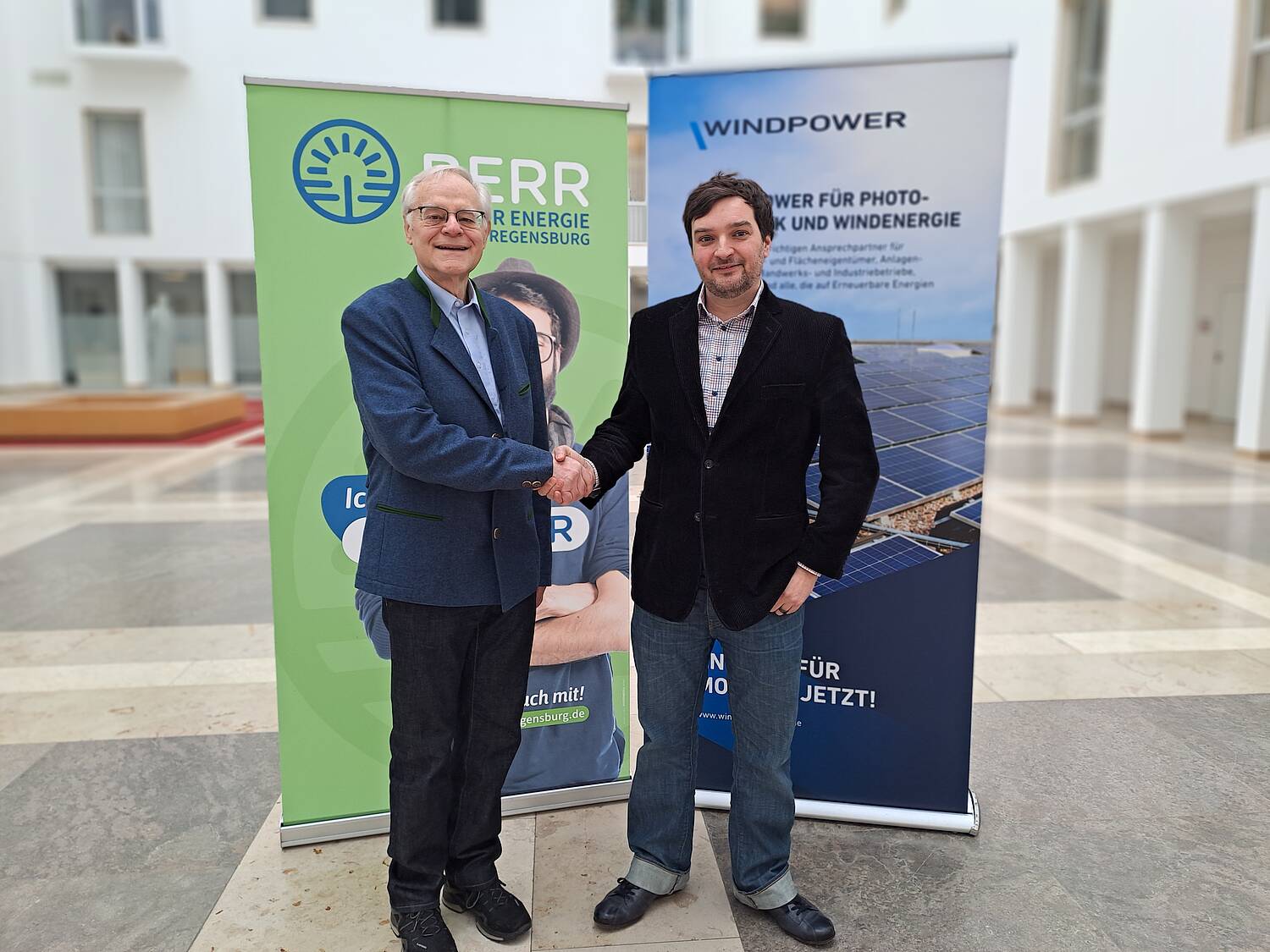 Die Bürger Energie Region Regensburg (BERR) investiert seit 2012 die Einlagen ihrer Mitglieder in Photovoltaikanlagen und Stromspeicherprojekte. Windpower projektiert und realisiert seit 1995 Großprojekte mit Bürgerbeteiligung, darunter Windkraftwerke, Photovoltaik-Dachanlagen und Solarparks. Um noch mehr Bürgern der Region die Möglichkeit zu geben, Teil dieser lukrativen Großprojekte zu sein, finanziert die BERR nun Tranchen von neuen Stromerzeugungsanlagen von Windpower und kann diese in kleineren Einheiten ihren Mitgliedern wiederum zur Zeichnung anbieten. „Dass die BERR sich anteilig an den Projekten von Windpower engagieren kann und dadurch auch Bürger von großen erneuerbaren Energieanlagen profitieren, die wir bisher noch nicht bieten konnten, freut uns sehr“, sagte Joachim Scherrer, Vorstandsvorsitzender der BERR. „Durch diese Kooperation wird unsere Region noch unabhängiger von importierter Energie und damit noch resilienter. Zudem können sich einzelne Bürger mit kleineren Beträgen daran beteiligen“, begrüßte Johannes Ehbauer, Geschäftsführer von Windpower, die neue Kooperation. In der Vergangenheit haben bereits vier Energiegenossenschaft in Anlagen der Windpower Gruppe investiert, darunter Genossenschaften aus Neumarkt und Schwandorf. Die Finanzierungen der ersten beiden Projekte, zwei Photovoltaik-Batteriespeicheranlagen im Gemeindegebiet von Regenstauf, werden für das Frühjahr 2026 erwartet. Diesen sollen zwei Windkraftwerke zwischen Straubing und Dingolfing folgen.