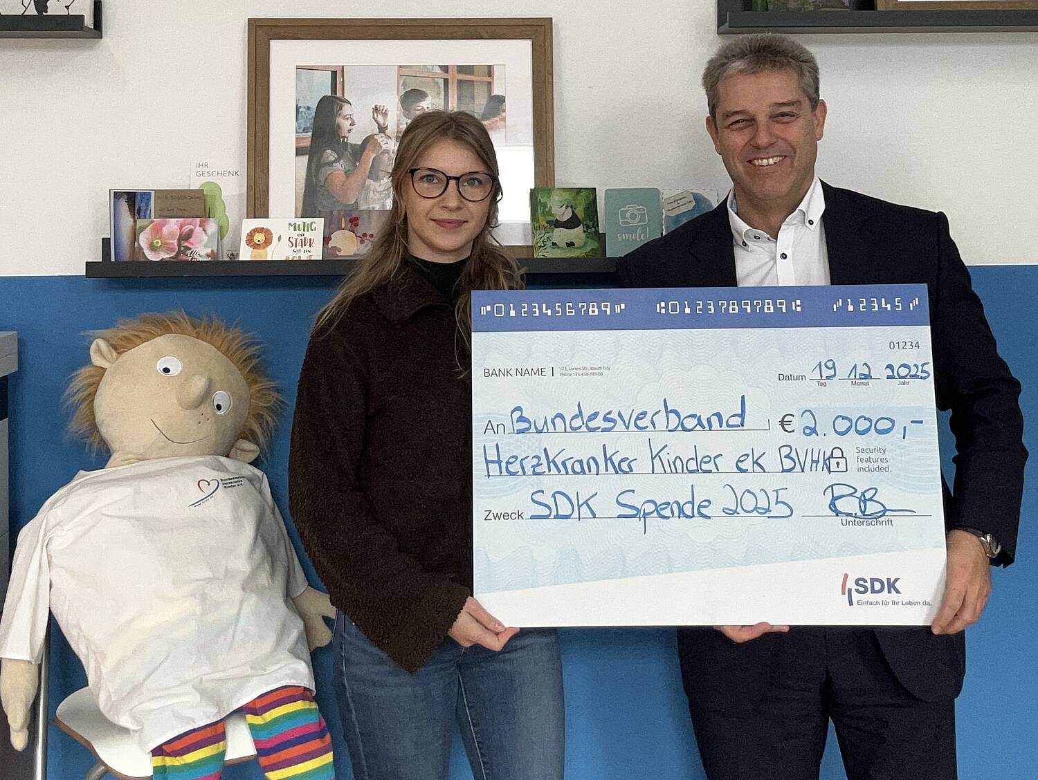 Wie in den Vorjahren verzichteten die Vertriebswege der SDK auf Weihnachtsgeschenke und spendeten stattdessen an soziale Projekte. So kamen 2.000 Euro für den Bundesverband herzkranker Kinder zusammen.