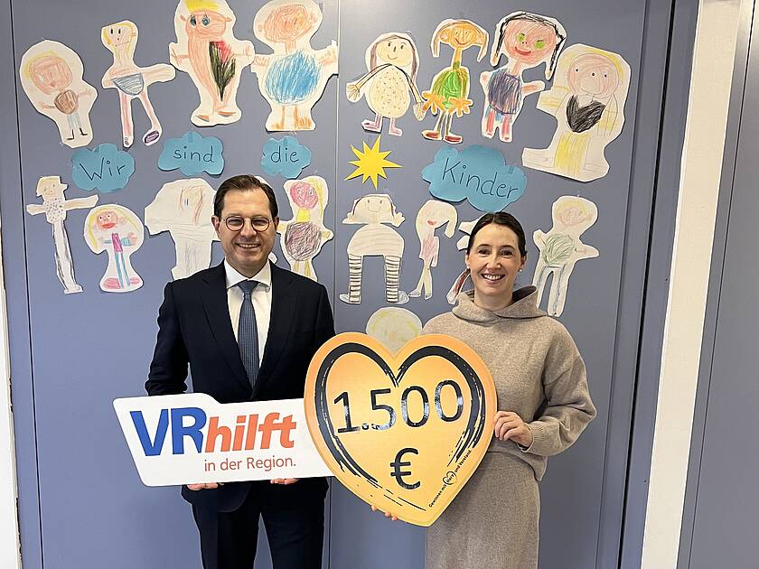Große Freude in der Katholischen Kindertagesstätte St. Elisabeth in Sennfeld: Die VR-Bank Main-Rhön unterstützt die Einrichtung mit 1.500 Euro. Mit dem Geld wird der Dachboden ausgebaut und die Elektrik fachgerecht installiert, sodass zusätzlicher Raum zur Lagerung von Materialien entsteht, die die Kita nicht das ganze Jahr über benötigt. Die Spende überreichte Frank Hefner, stellvertretender Vorstandsvorsitzender der VR-Bank Main-Rhön, an Yasmin Schäfer-Melchior, Vorstandsmitglied des Caritasvereins St. Elisabeth Sennfeld, welcher der Träger der Einrichtung ist. Für die Bank ist die Unterstützung ein Ausdruck ihrer regionalen Verbundenheit und ein Beitrag, die Rahmenbedingungen in der Kita noch vorteilhafter zu gestalten. Denn die gewissenhafte Betreuung und die Schaffung optimaler Bedingungen für die Entwicklung der Kinder ist ein verantwortungsvoller Auftrag und eine wichtige Investition in die Zukunft.