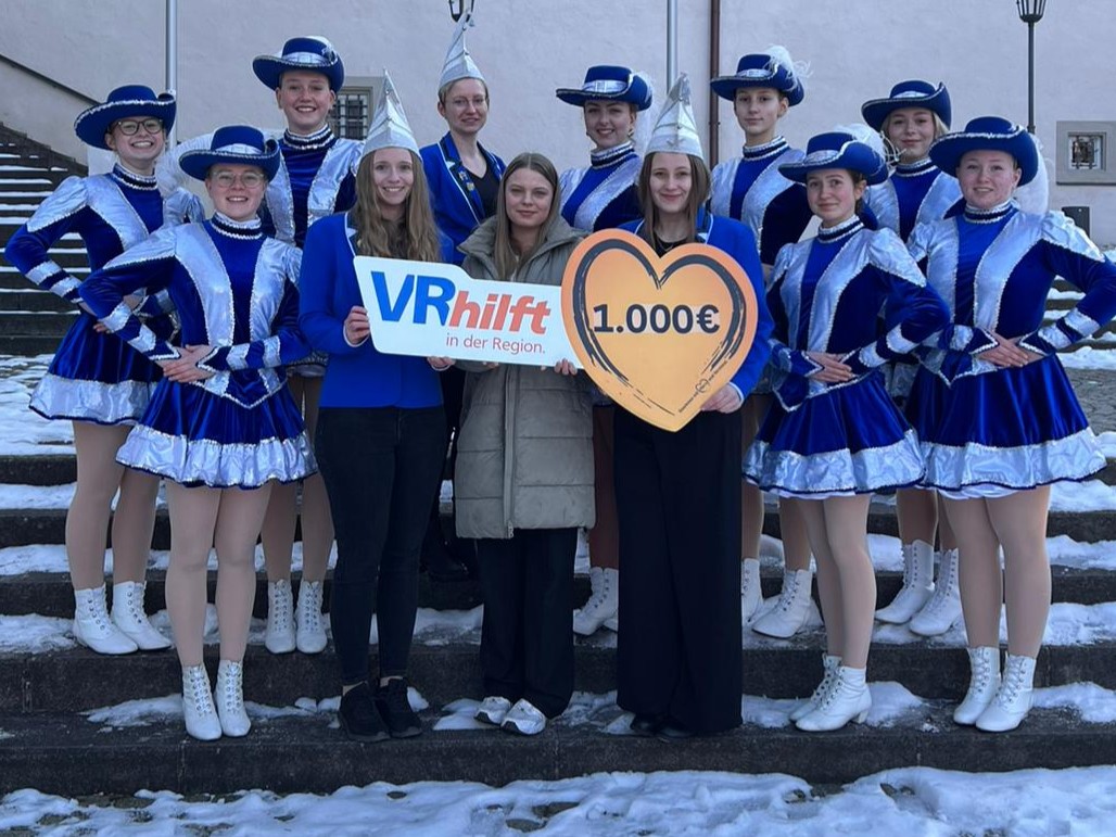 Der Faschingsverein FFC Fladungen plant für das bevorstehende Vereinsjubiläum die Anschaffung neuer Marschkostüme für die Prinzengarde. Dieses Vorhaben unterstützte die VR-Bank Main-Rhön mit 1.000 Euro und leistet so einen Beitrag zur Förderung des Brauchtums und der Jugendarbeit des FFC Fladungen. Johanna Schultheis, Filialberaterin der VR-Bank, überreichte die Spende an die beiden Vorständinnen des Vereins, Eva Büschelberger und Jessica Bott. Gemeinsam mit Vereinsmitgliedern und Tänzerinnen der Prinzengarde nahmen sie die Unterstützung dankbar entgegen. Die bestehenden Marschkostüme der 17 Tänzerinnen weisen erhebliche Gebrauchsspuren auf und müssen deshalb nach 15 Jahren intensiver Nutzung ersetzt werden. Durch jährliche Änderungen und Anpassungsarbeiten sind die Stoffe ausgedünnt und die Pailletten haben ihren Glanz verloren. Auch der Schnitt entspricht nicht den aktuellen Tanzuniformen. Doch trotz der Aussicht auf neue Kostüme lebt der Verein das Prinzip der Nachhaltigkeit und arbeitet die aktuellen Modelle sorgfältig auf, um den neuen Satz vor allem für die Bühnenauftritte zu schonen.