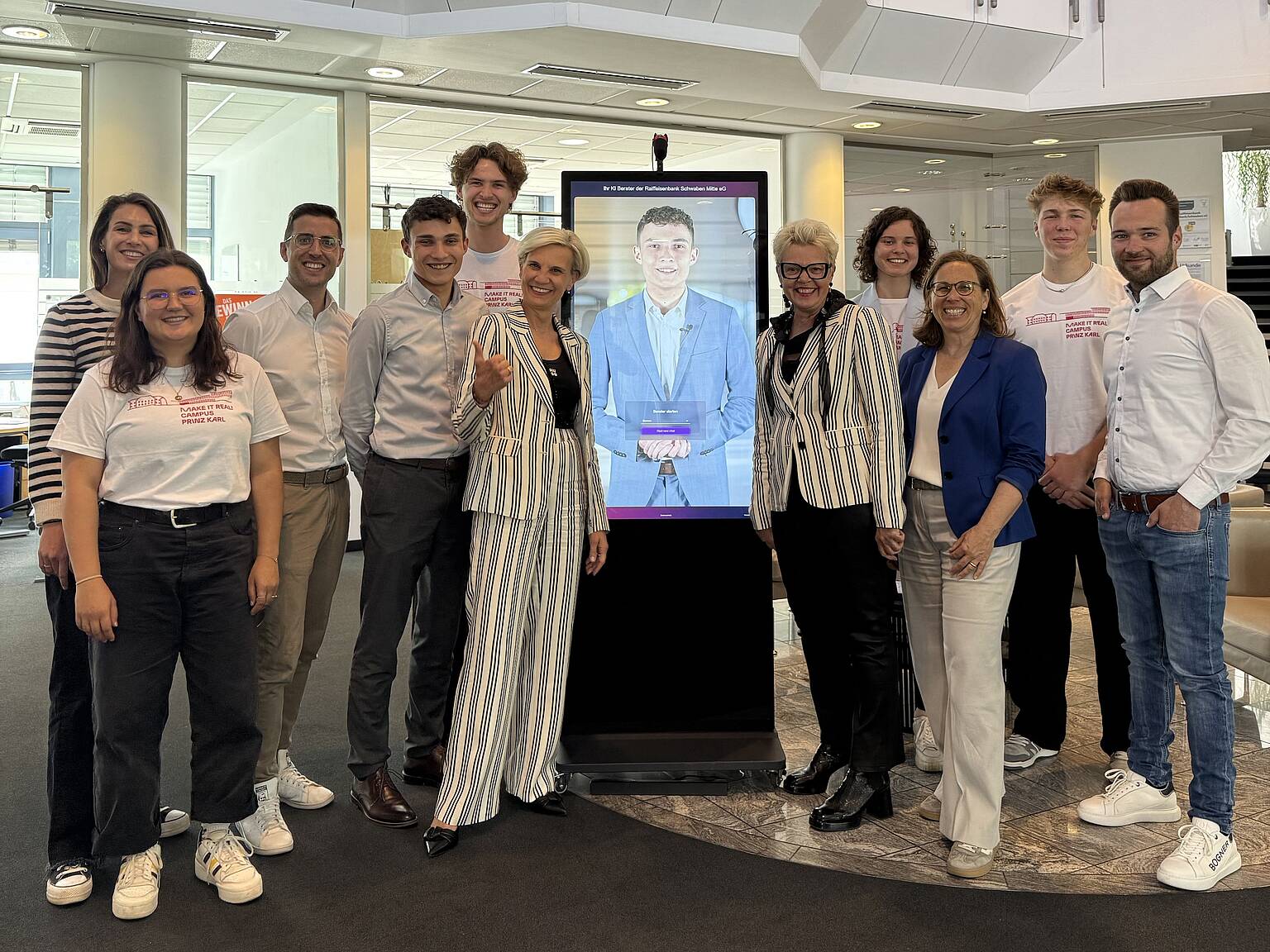 Auch Studierende der Technischen Hochschule Augsburg begleiteten die Pilotphase. Für ihre Beobachtungen waren sie zu Gast bei der Raiffeisenbank Schwaben Mitte und befragten dort sowohl Mitarbeitende als auch Kundinnen und Kunden nach dem Einsatz von RIAA.
