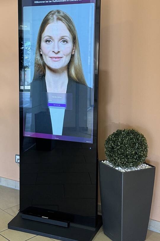 Bei der Raiffeisenbank Main-Spessart wurde RIAA in ANNA umbenannt. Eine Service-Mitarbeiterin der Bank hatte ihr Gesicht und ihre Stimme für die Anwendung zur Verfügung gestellt. Somit trafen Kundinnen und Kunden bei der Raiffeisenbank Main-Spessart an der KI-Stele auf ein vertrautes Gesicht.