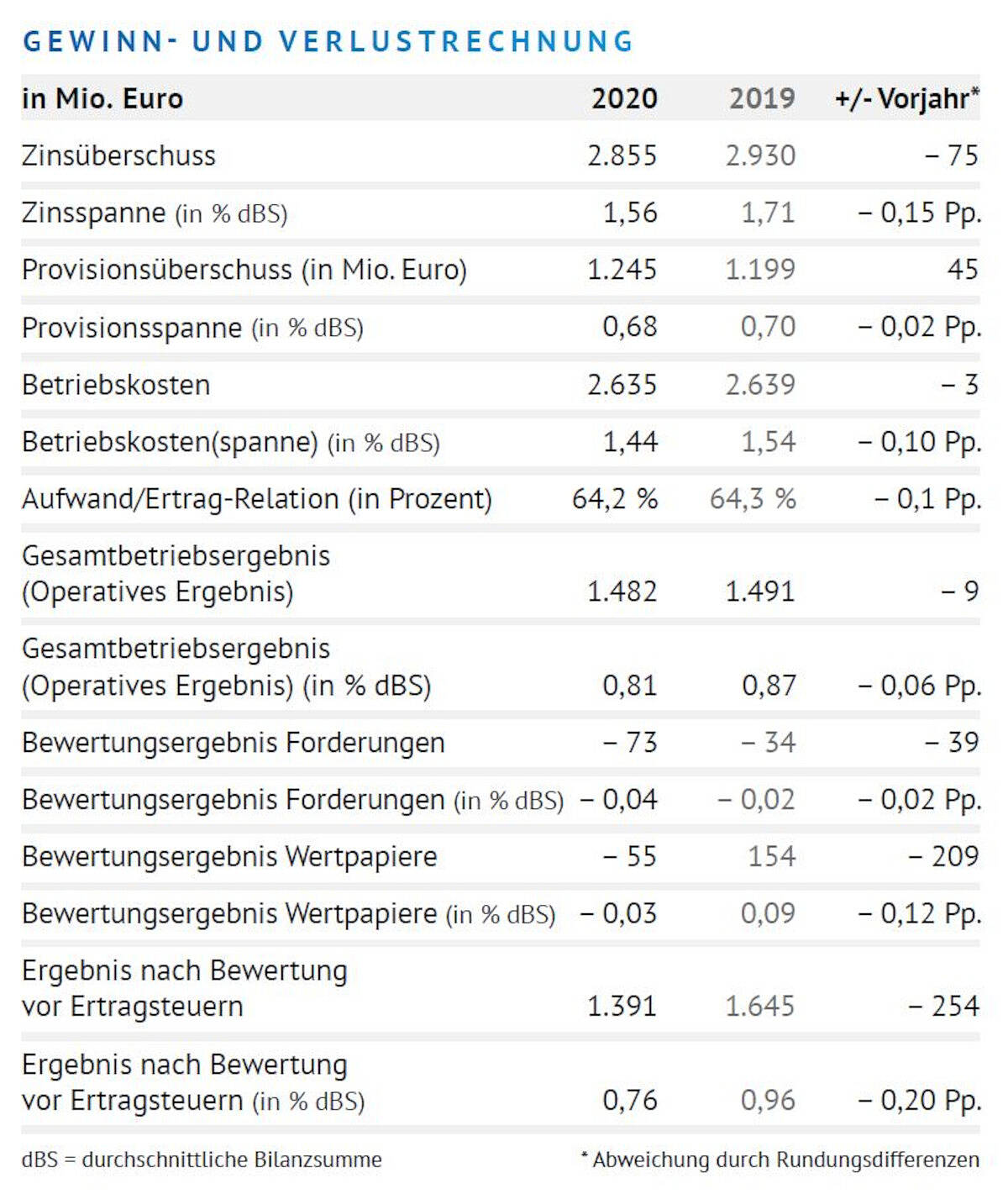Nach wie vor bleibt das Niedrigzinsumfeld aufgrund der Geldpolitik der Europäischen Zentralbank (EZB) eine Herausforderung für die Banken. Der weiterhin hohe Passivüberhang ist für die Banken zunehmend belastend. Aus diesem Grund schrumpft die Ertragsspanne der Banken weiter. Das Zinsergebnis lag bei 2,855 Milliarden Euro und gab damit um 2,6 Prozent (75 Millionen Euro) nach.
