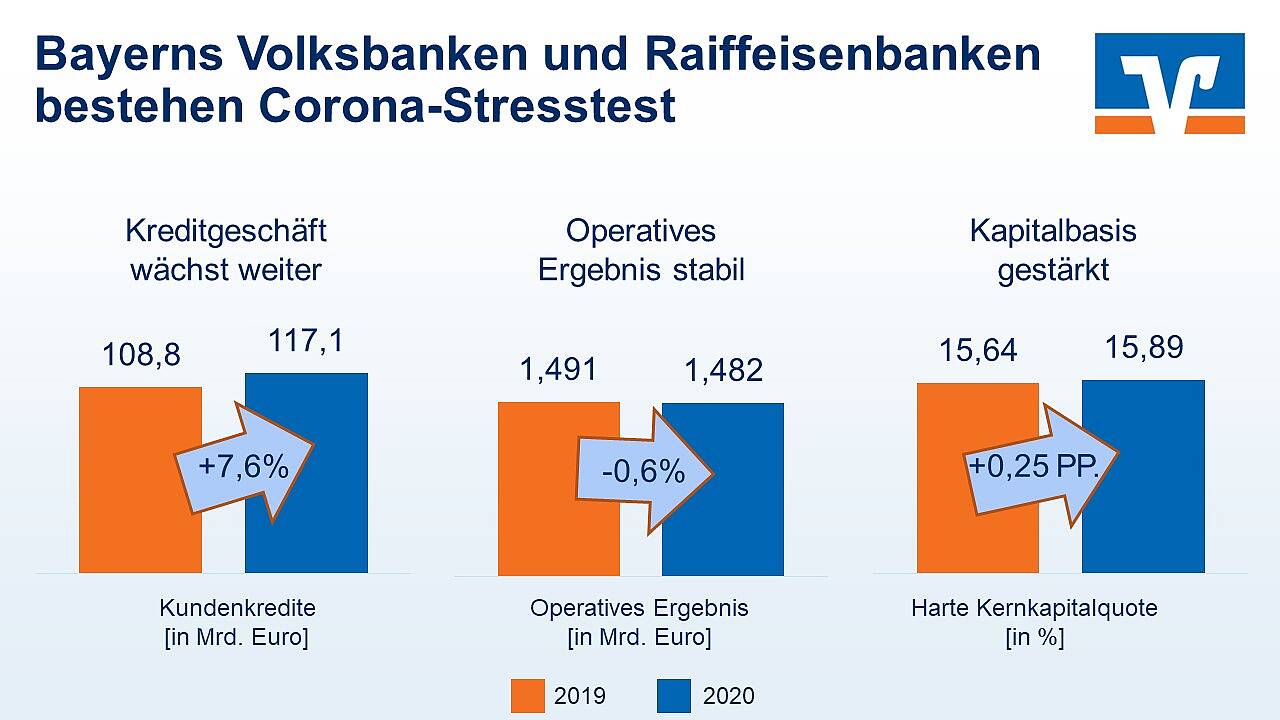 - Trotz des Corona-bedingten Einbruchs der Volkswirtschaft sind die bayerischen Volksbanken und Raiffeisenbanken 2020 weiter gewachsen.