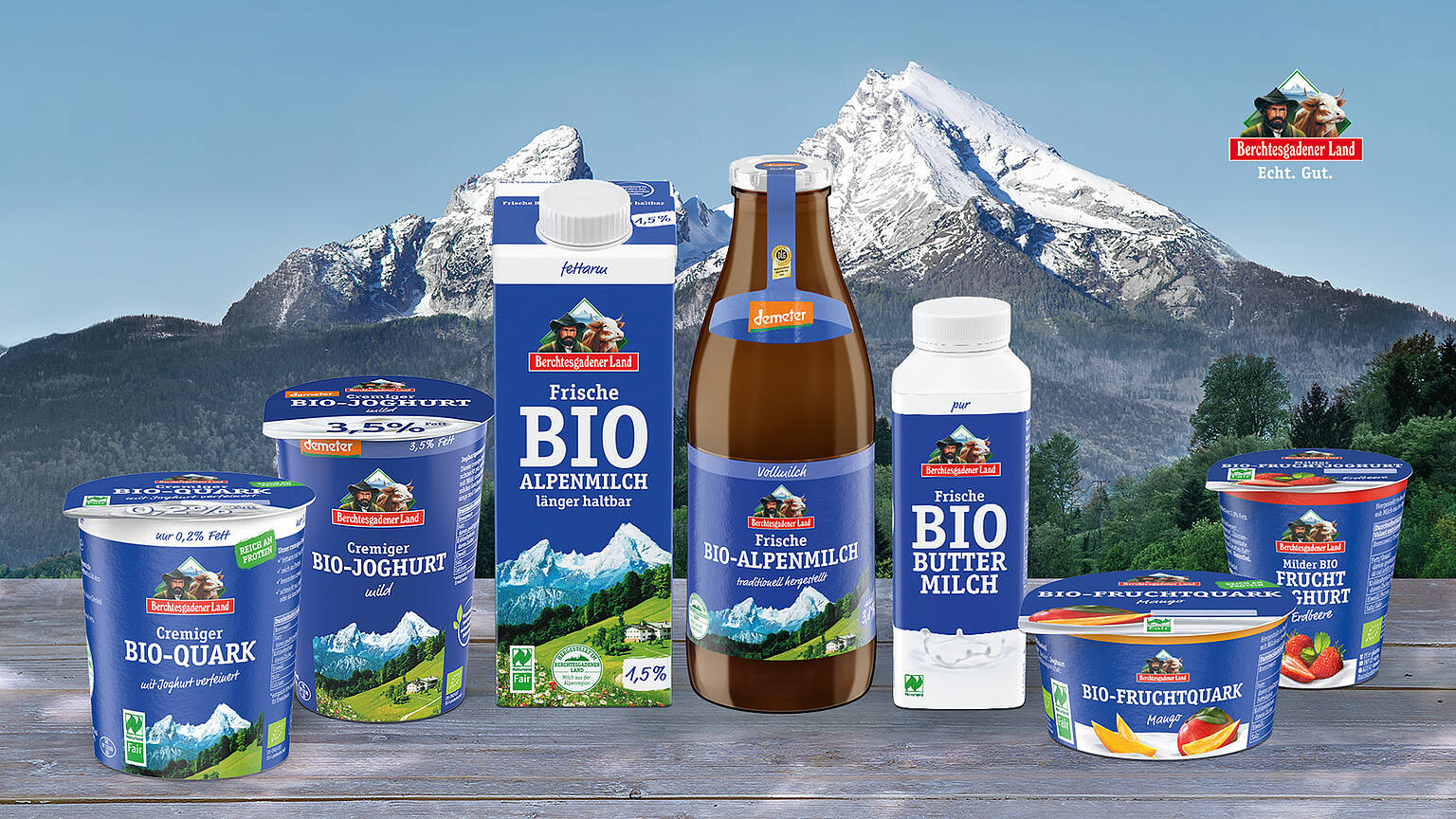 Bio-Produkte der Molkerei Berchtesgadener Land: Von den 1.800 Mitgliedern wirtschaften heute 600 anerkannt ökologisch. Sie liefern 100 Millionen Kilogramm Bio-Milch im Jahr an die Genossenschaft.