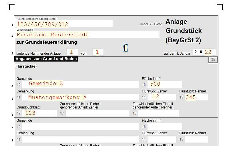 Muster für die Grundsteuererklärung: Im Gegensatz zum Bund setzt Bayern bei der Grundsteuer auf ein reines Flächenmodell. Repro: GVB