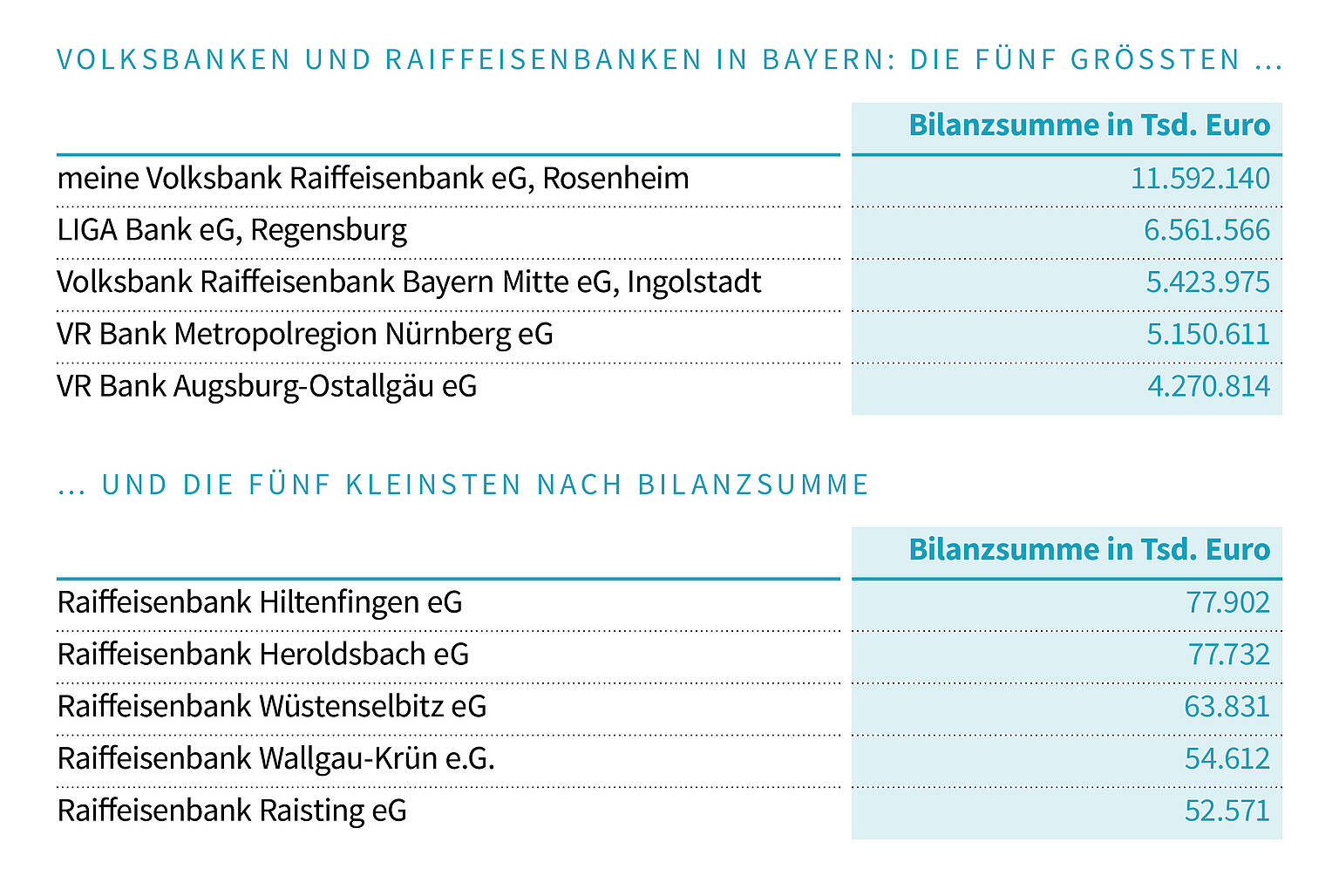 Die nach Bilanzsumme sortierte Übersicht über die bayerischen Volksbanken und Raiffeisenbanken steht hier zum Download bereit.