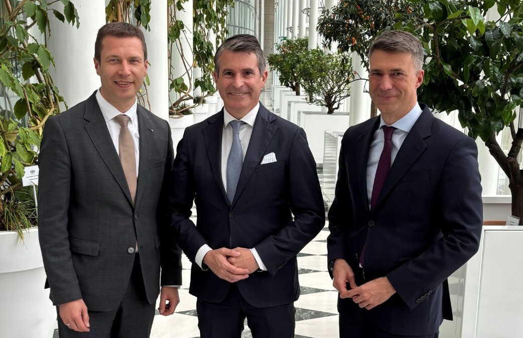 GVB-Präsident Stefan Müller (r.) mit Matthias Dießl, Präsident des Sparkassenverbands Bayern, und dem bayerischen Europaminister Eric Beißwenger.