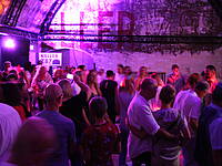 Impressionen von der Vertreterversammlung: Blick in die Arena zu Schloss Kaltenberg (Foto links) sowie auf die Bühne (Foto rechts, v. li.): Stefan Jörg (Vorstandsvorsitzender) und Johann Forster (Aufsichtsratsvorsitzender, beide VR-Bank Landsberg-Ammersee).