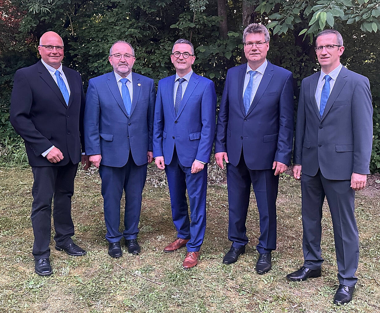 Veränderungen im Vorstand der Raiffeisenbank Bütthard-Gaukönigshofen (v. li.): Christian Schmitt (Aufsichtsratsvorsitzender), Franz Kraupe (ausgeschiedener Vorstandsvorsitzender), Walter Friedrich (Leiter Operative Prüfung GVB), Manfred Schmidt (neuer Vorstandsvorsitzender) und Markus Weber (neuer Vorstand).