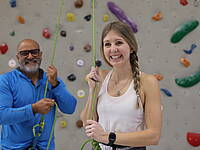 Die Staatssekretärin Leonie Gebers beim Rundgang durch die Werkstatt.