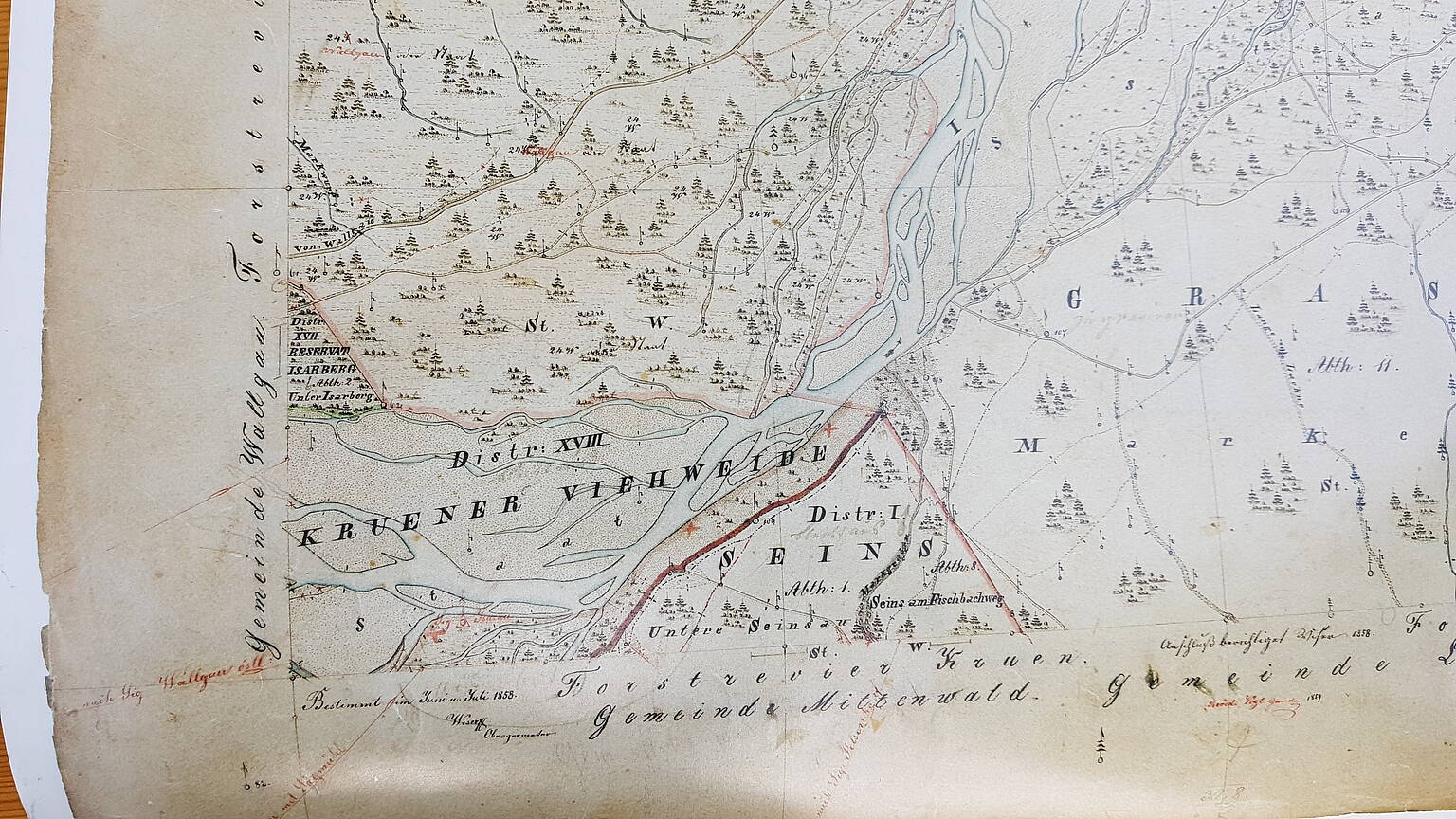 Verbrieft seit dem 19. Jahrhundert: Auf dieser historischen Karte ist in den Isarauen die „Krüner Viehweide“ eingetragen.