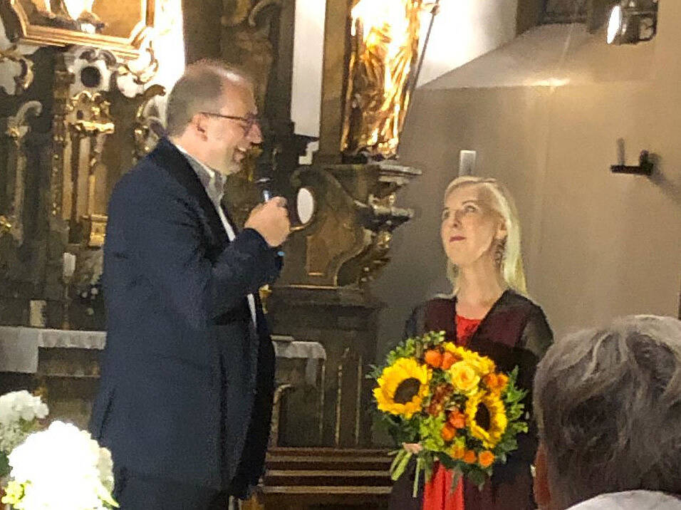 Preisübergabe in der Kirche St. Magdalena in Herzogenaurach (v. li.): Hans-Peter Lechner, Vorstand, und Cornelia Götz.