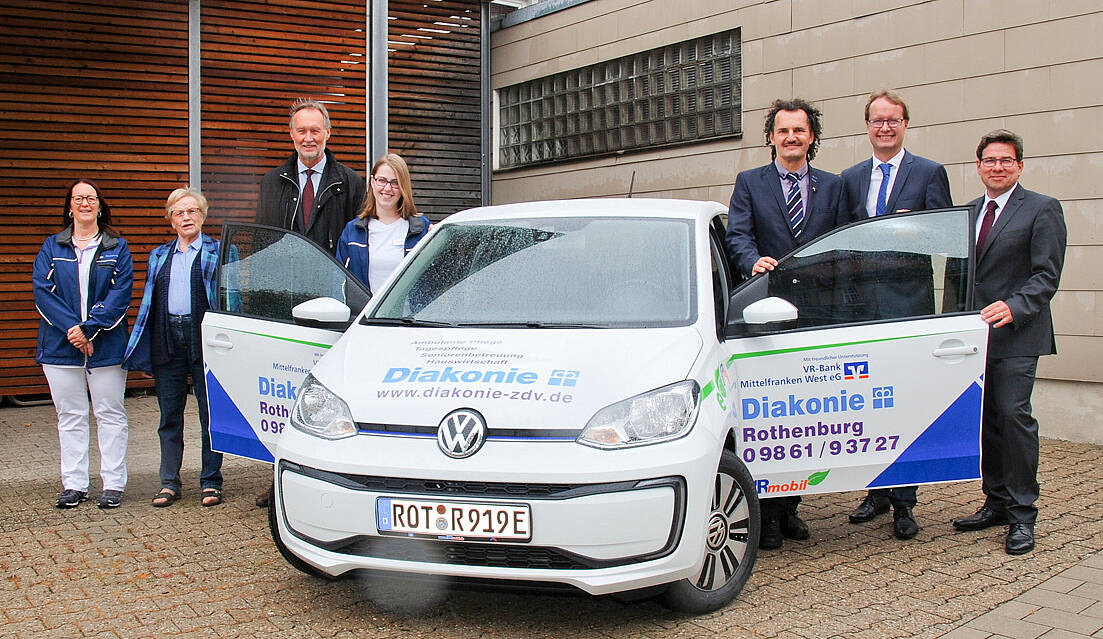 Die VR-Bank Mittelfranken West hat den Diakoniestationen in Rothenburg, Burk-Dentlein-Wieseth und Oberdachstetten jeweils ein VR-Mobil im Wert von rund 12.000 Euro gespendet. Die Gelder stammen aus den Zweckerträgen des Gewinnsparens. Das Kreditinstitut hat in den vergangenen Jahren rund 30 Fahrzeuge an soziale und gemeinnützige Einrichtungen in ihrem Geschäftsgebiet übergeben. Heuer ist erstmals auch ein E-Auto dabei, das im Stadtgebiet von Rothenburg eingesetzt wird.