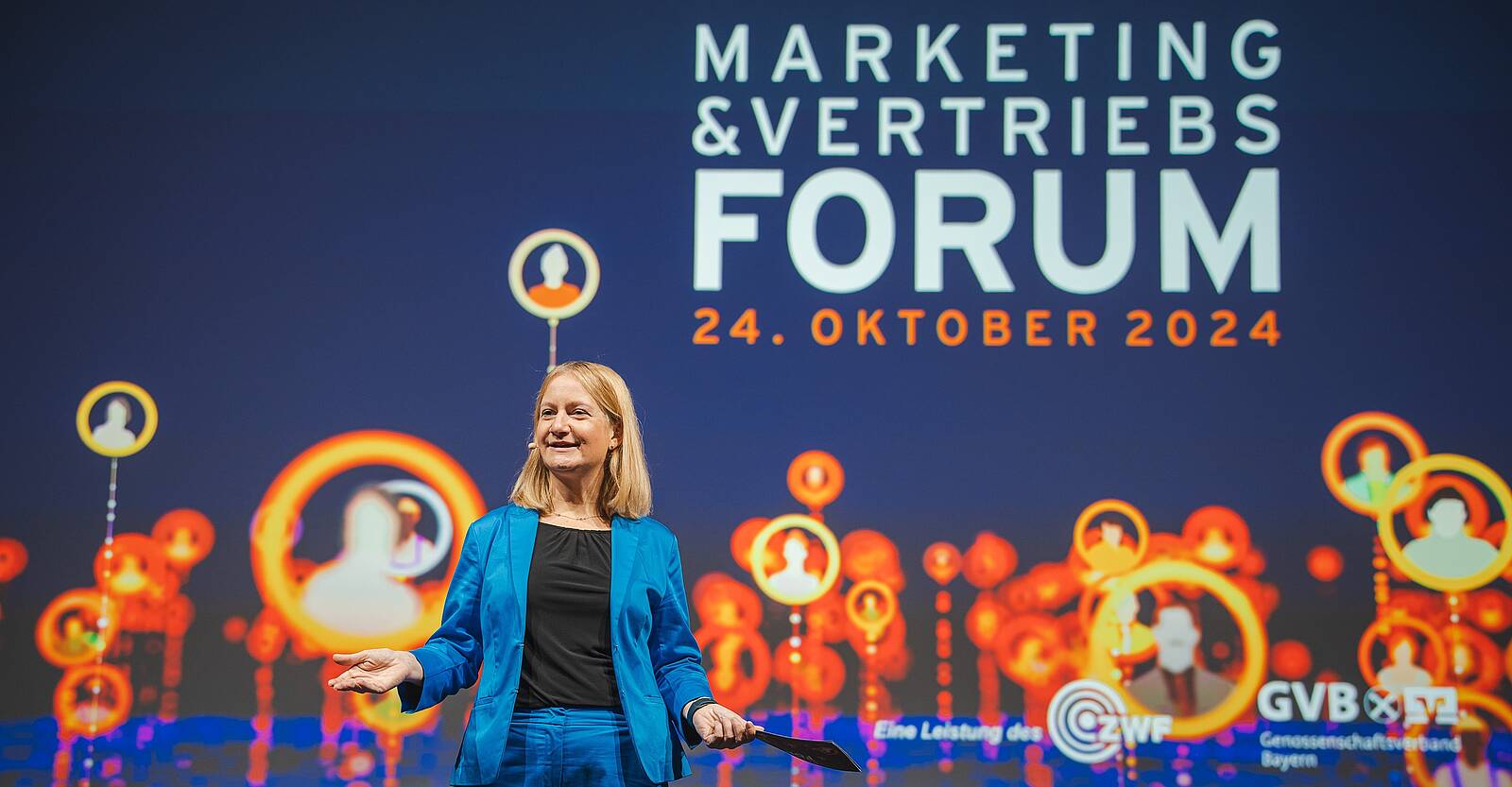„Lasst uns gemeinsam Power auf die Straße bringen!“ Mit diesen Worten eröffnete Martina Stutz, kommissarische Bereichsleiterin Beratung Banken beim Genossenschaftsverband Bayern (GVB), das Marketing- und VertriebsForum 2024 des GVB und des Zentralen Werbefonds Bayerischer Genossenschaftsbanken (ZWF). Rund 360 Teilnehmerinnen und Teilnehmer von bayerischen Volks- und Raiffeisenbanken und zahlreicher Verbundpartner waren zum MuV-Forum ins zentral gelegene Maritim Hotel in Ingolstadt gekommen, um zu konkreten Themen aus den drei Bereichen Marketing, Vertrieb und Personal praktische Umsetzungsbeispiele und Anregungen zu erhalten. Damit konnte in diesem Jahr die höchste Teilnehmer-Zahl seit Corona verbucht werden.