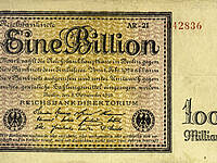 Mit der Ausgabe der Rentenmark als Parallelwährung zur Reichsmark fand die Hyperinflation ab dem 20. November 1923 rasch ihr Ende. Die Reichsbank setzte den Wechselkurs der Rentenmark zur Reichsmark auf eins zu eine Billion fest. In der Vorkriegszeit, als noch der Goldstandard galt, war ein US-Dollar 4,20 Reichsmark wert. Im November 1923 kostete der Dollar dann 4,2 Billionen Mark. In Zahlen: 4.200.000.000.000 Mark.